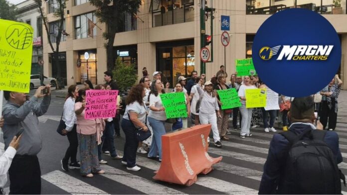 Agencias de viajes de distintas regiones del país se manifestaron frente a las oficinas de Magnicharters en la Ciudad de México para exigir el pago de recursos correspondientes a servicios ya liquidados por sus clientes.