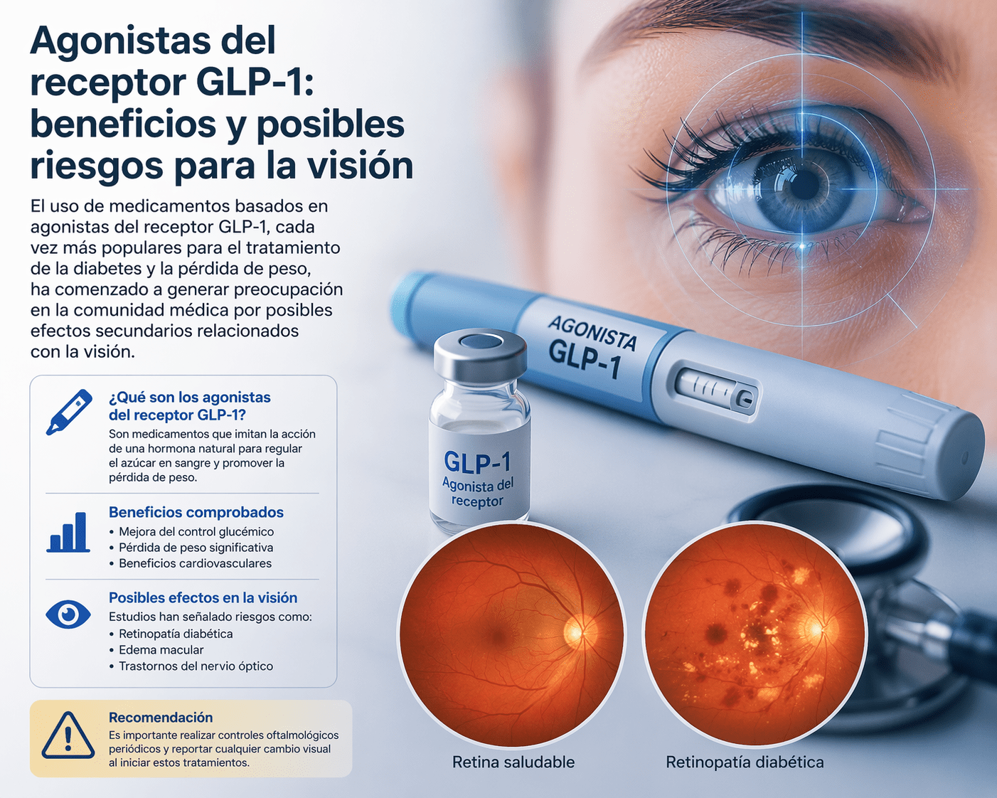 El uso de medicamentos basados en agonistas del receptor GLP-1, cada vez más populares para el tratamiento de la diabetes y la pérdida de peso, ha comenzado a generar preocupación en la comunidad médica por posibles efectos secundarios relacionados con la visión.