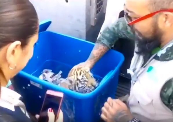 El cachorro se encontraba sedado, sin alimentos y sobre recortes de periódico, quedando a disposición de personal de PROFEPA, quien junto con las autoridades ministeriales realizará la verificación de los permisos para la posesión de especies protegidas.
