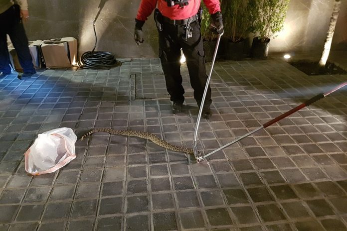 Ante el arribo de los rescatistas se realizaron maniobras durante más de 20 minutos hasta que capturaron a la víbora de casi 1.5 metros de longitud para trasladarla a una zona despoblada de la sierra.
