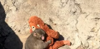 Mono viral se aferra a peluche en Japón