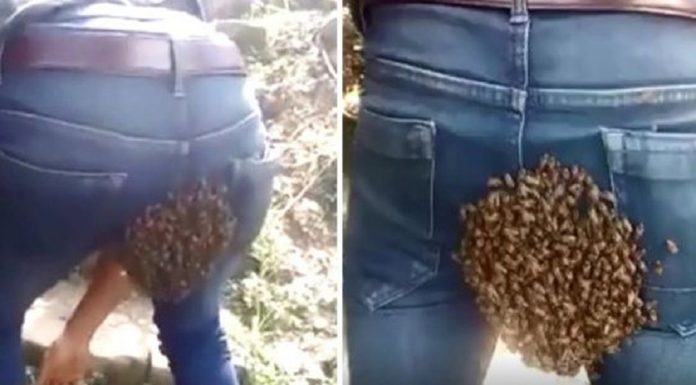 En la ciudad de Kohima, India, un enjambre de abejas confundió el trasero de un hombre, de 25 años de edad, en un panal.