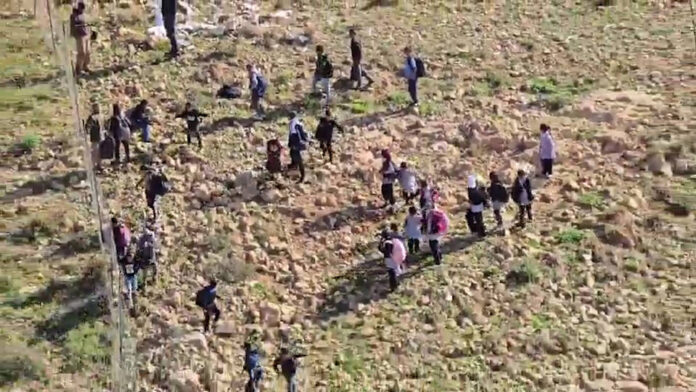 Colonos bloquean el acceso a la escuela de niños palestinos en Umm al Khai, en Cisjordania reocupada, tras colocar alambre de púas y obstáculos en el camino habitual de los estudiantes.