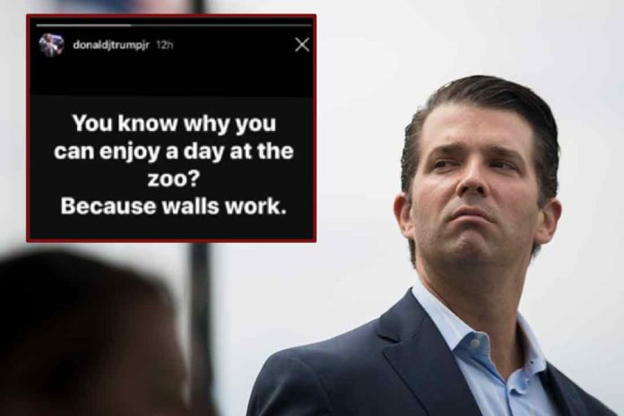 “¿Sabes por qué disfrutas de un día en el zoológico? Porque los muros funcionan”, escribió Trump hijo en una publicación de Instagram que posteriormente fue eliminada.