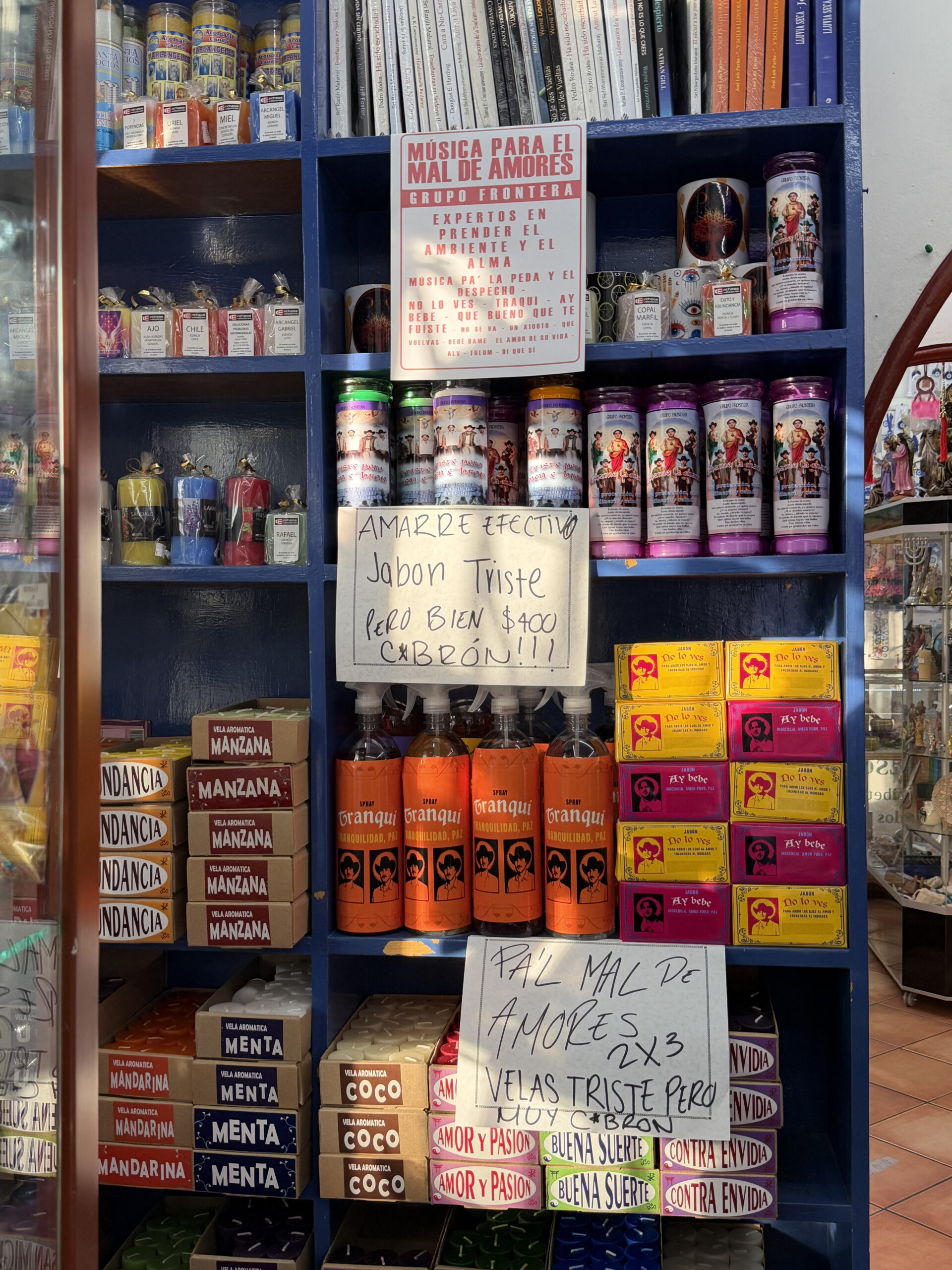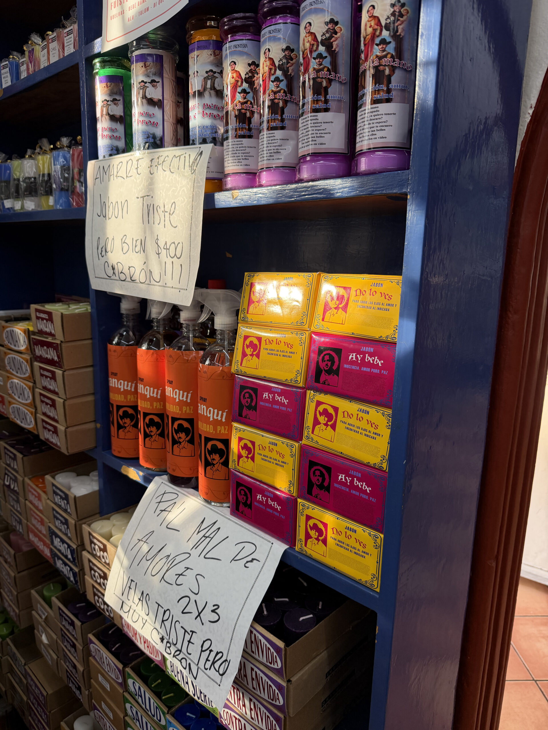 Lo que inició como una curiosidad local pronto se convirtió en tendencia. Los artículos, colocados entre imágenes de santos, rituales para el amor y protecciones contra “malas vibras”, ahora conforman pequeños altares callejeros que mezclan lo urbano, lo esotérico y el fervor musical. En varios de estos puestos se puede ver el rostro de los integrantes del grupo decorando veladoras artesanales, mientras que otros vendedores ofrecen amuletos supuestamente “bendecidos” para atraer buena suerte al ritmo de los corridos regionales.