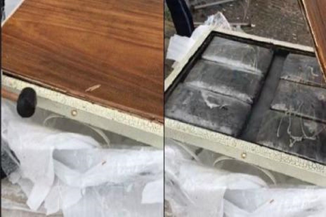 Elementos de la Policía Federal detectaron 40 kilos de marihuana ocultos en mesas y que serían enviados a Estados Unidos.