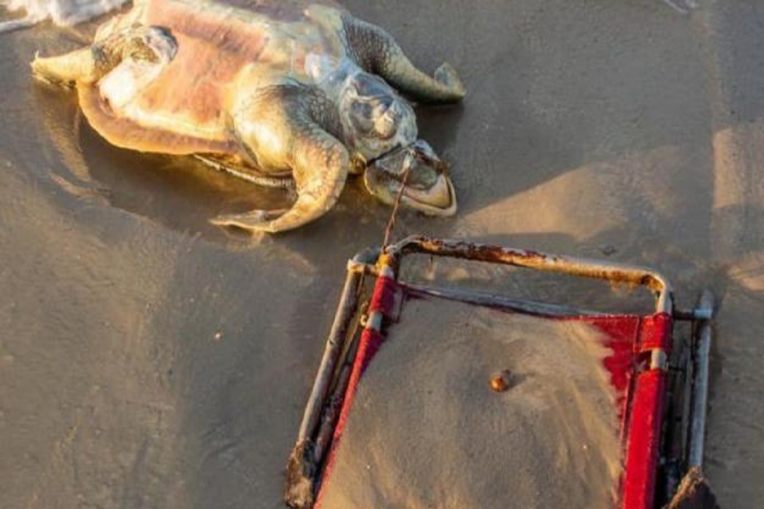 Fue encontrada una tortuga marina en peligro de extinción muerta con una correa de una silla de playa enredada en el cuello en Alabama.