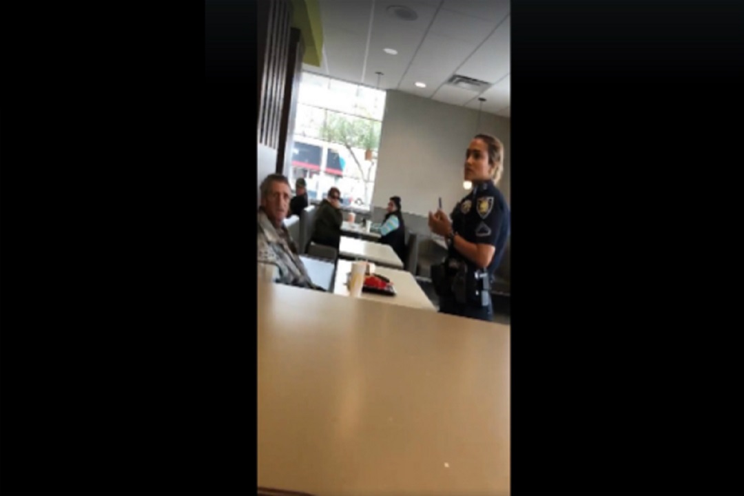 El incidente fue captado en un video que fue difundido en Facebook, en el que se evidenció a la agente mientras ordenaba al indigente que abandonara el establecimiento antes de que terminara su comida.
