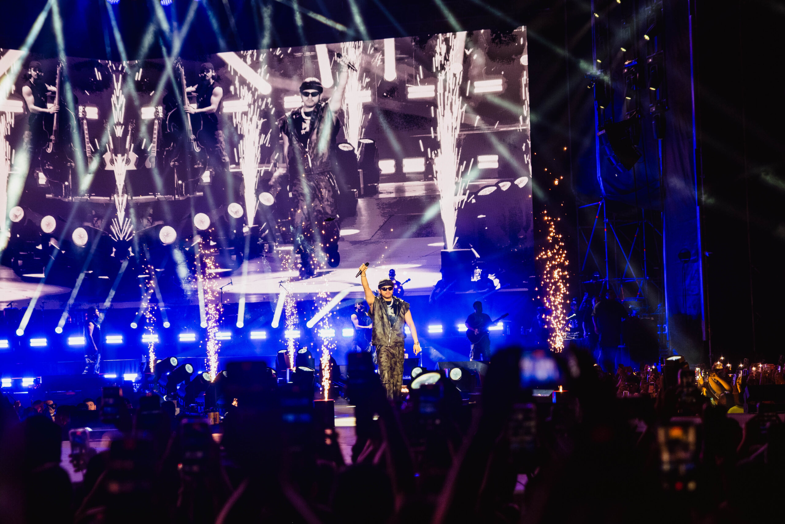 La energía del show alcanzó su punto máximo cuando el DJ de la agrupación transformó el estadio en un antro masivo. La gente no dejó de bailar con canciones como “Nel” y “Harley Queen“. La noche continuó con una sorpresa: el invitado especial Lenny Ramírez subió al escenario para un dueto con la banda, acompañado por la potencia de la música de banda en vivo.