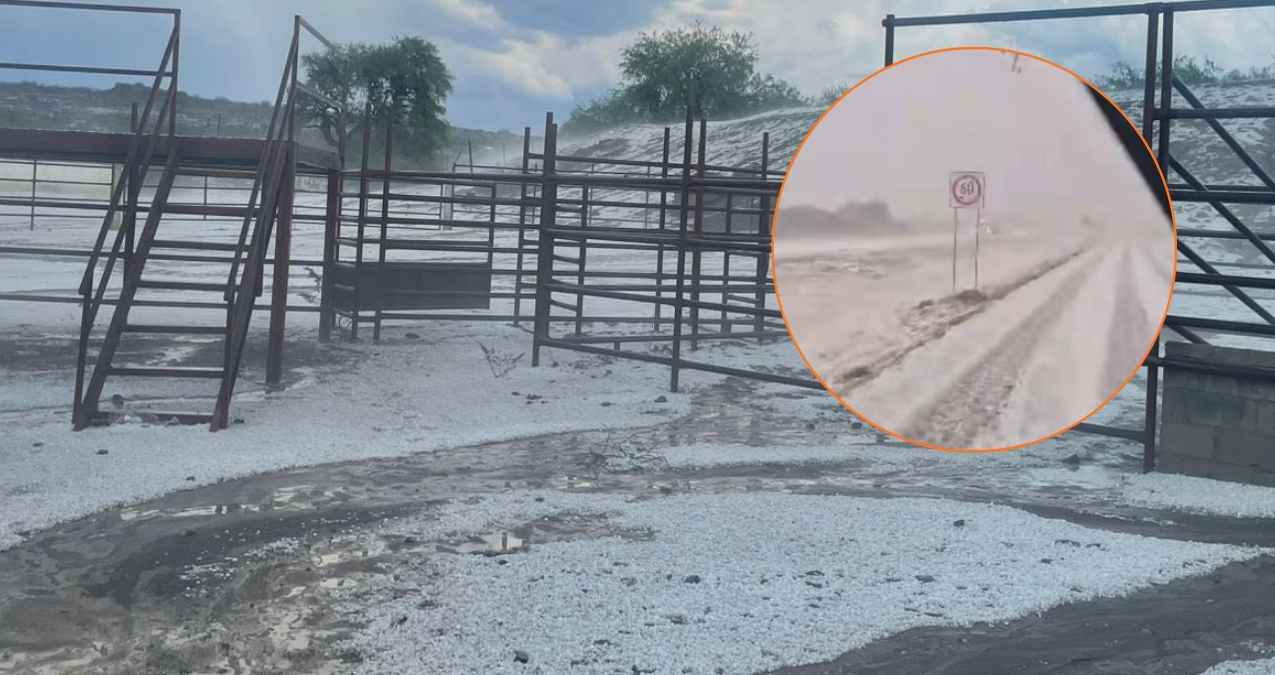 El fenómeno se registró sobre la Carretera 57, a la altura de la comunidad Cruz de Elorza, donde el granizo cubrió parcialmente la carpeta asfáltica.