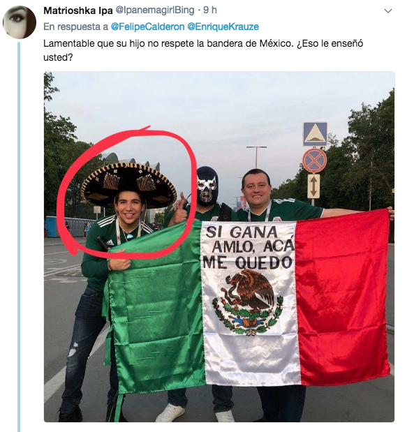 “Lamentable que su hijo no respete la bandera de México. ¿Eso le enseño usted?”, escribió una usuaria en Twitter, en donde muchos han estado dejando sus comentarios al ex mandatario.