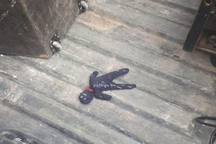 Compartió fotografías de muñecos de tela negra que aparecieron en la puerta de su vivienda, con alfileres incrustados y con su nombre bordado.