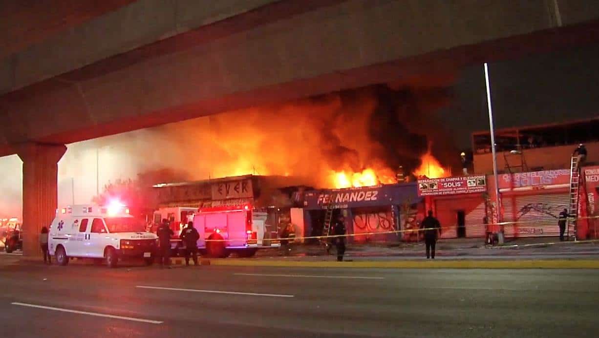 Al menos 8 negocios de autopartes se vieron afectados por las llamas de fuego que se registraron en uno de ellos, la madrugada de este martes, en el municipio de Monterrey.