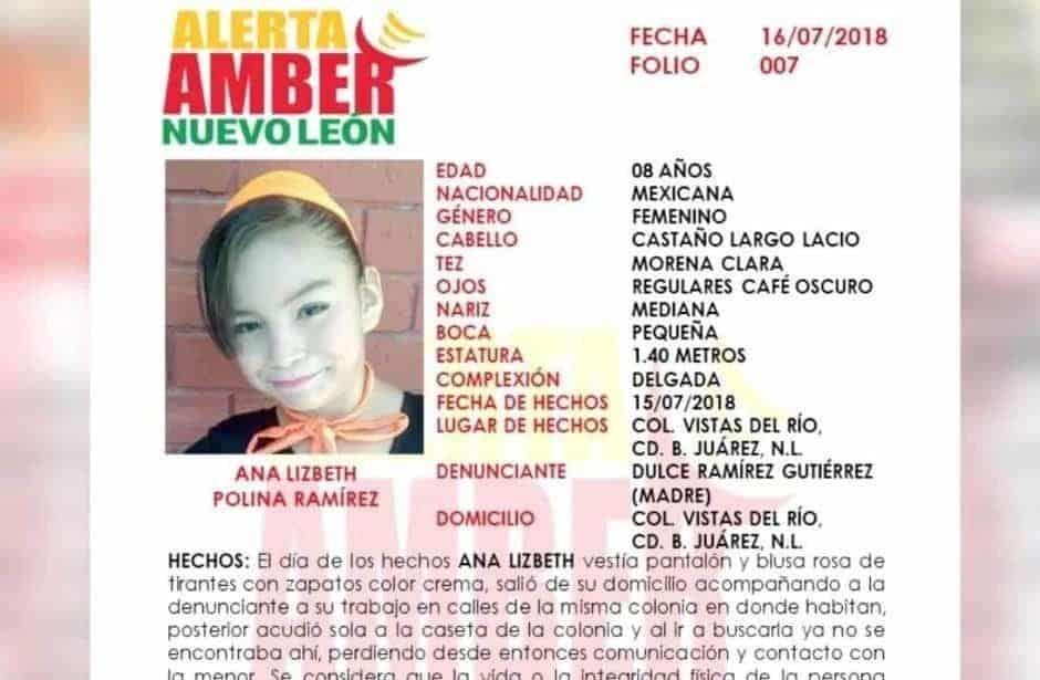 Después de casi 48 horas de búsqueda, el día de ayer martes al rededor de las 5:00 de la tarde, fue localizado el cuerpo de la pequeña Ana Lizbeth Polina Ramírez en un lote baldío de la colonia Vistas del Río en Juárez, Nuevo León.