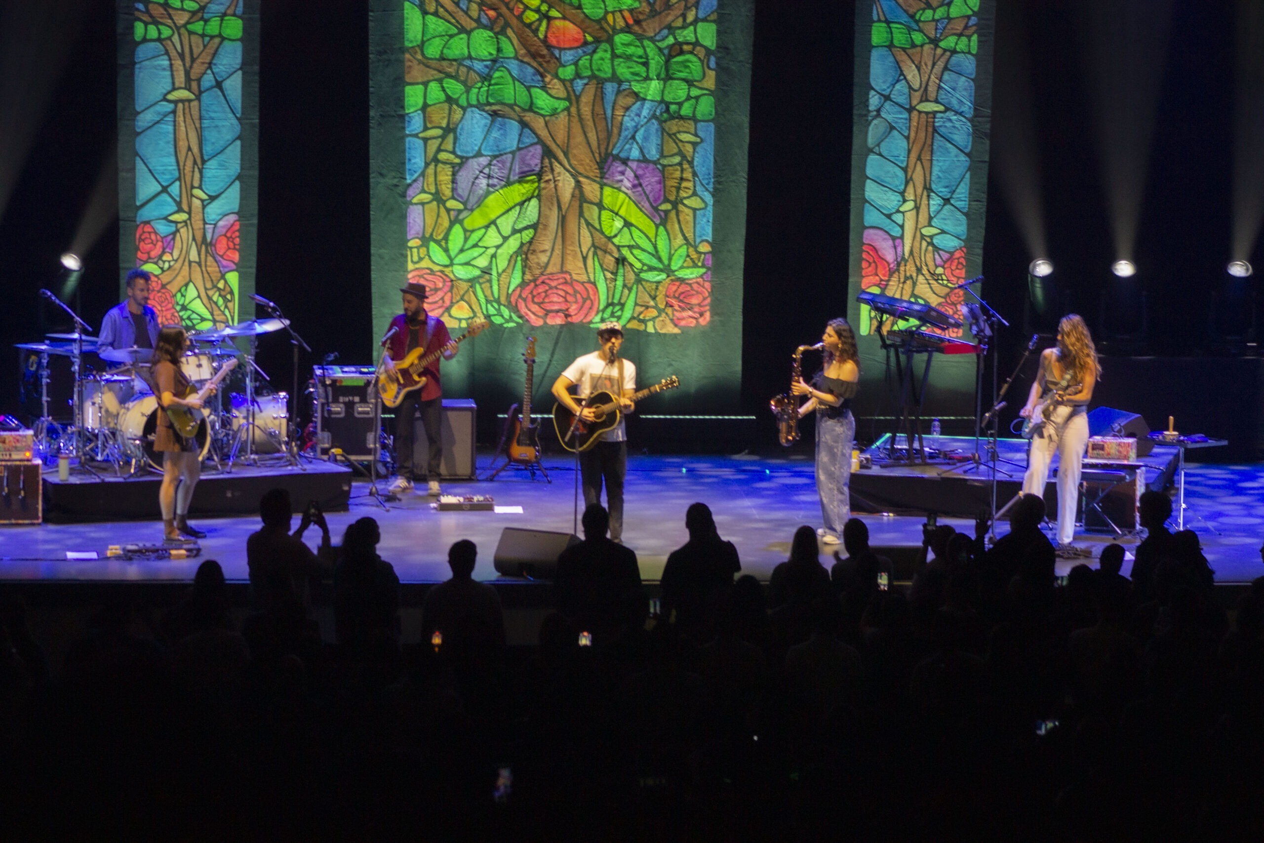Y es que ese es su sello. Sus shows no son espectáculos masivos tradicionales, sino experiencias cargadas de optimismo, mensajes positivos y una vibra que baja revoluciones al ritmo de folk, pop y soul.