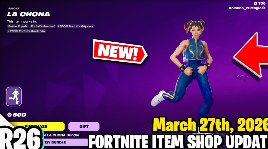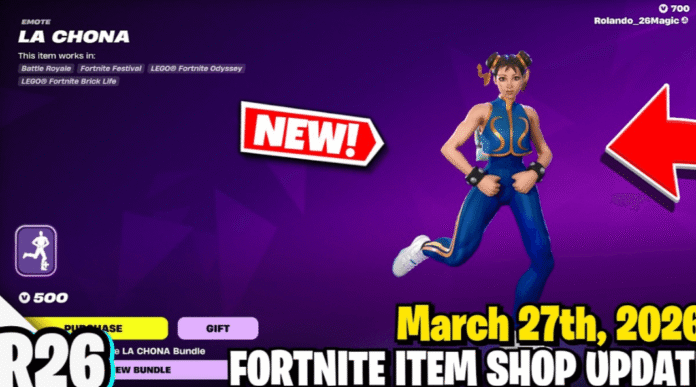 El gesto, titulado “LA CHONA”, se encuentra disponible en la tienda del juego por 500 V-Bucks e incluye la pista musical original, permitiendo a los jugadores ejecutar el baile característico en distintos modos como Battle Royale, Festival y LEGO Fortnite.