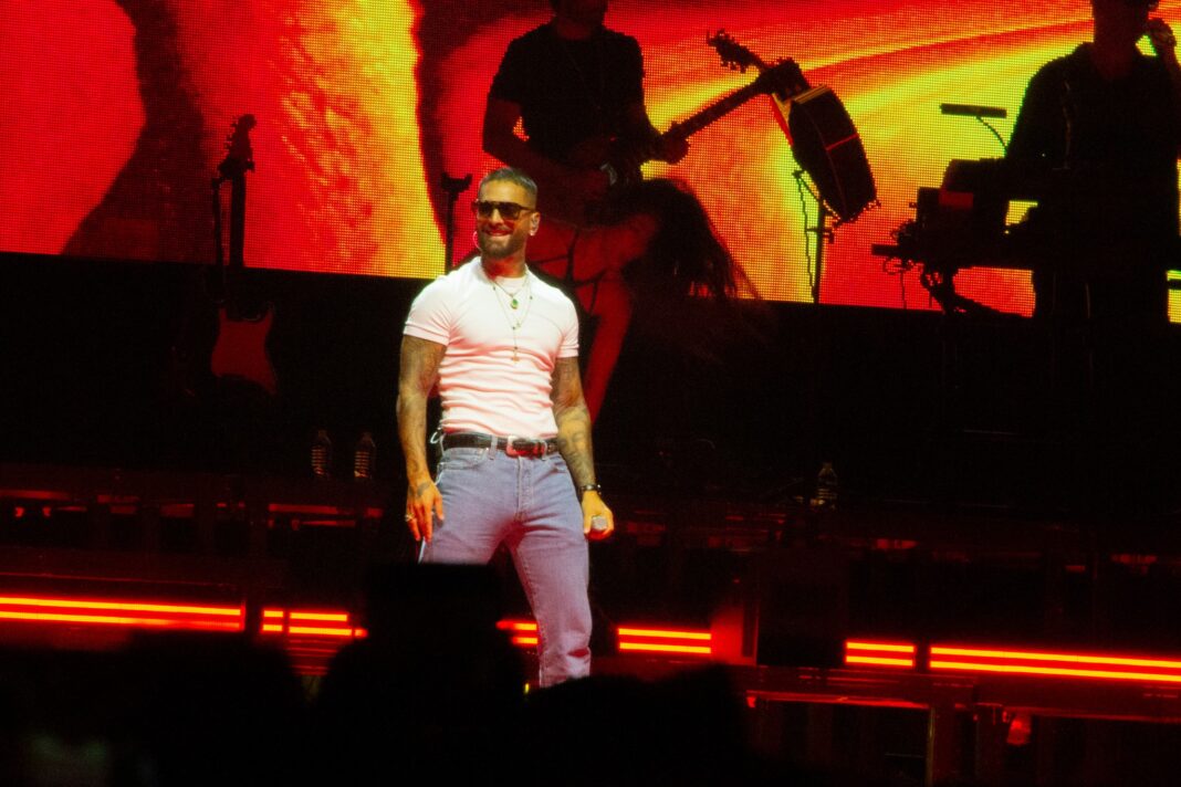 Al filo de las 21:15 horas, el colombiano apareció en el escenario vistiendo un abrigo blanco para arrancar con éxitos como “Borro Cassette” y “El Perdedor”, temas que marcaron el inicio de un recorrido musical por más de una década de trayectoria.