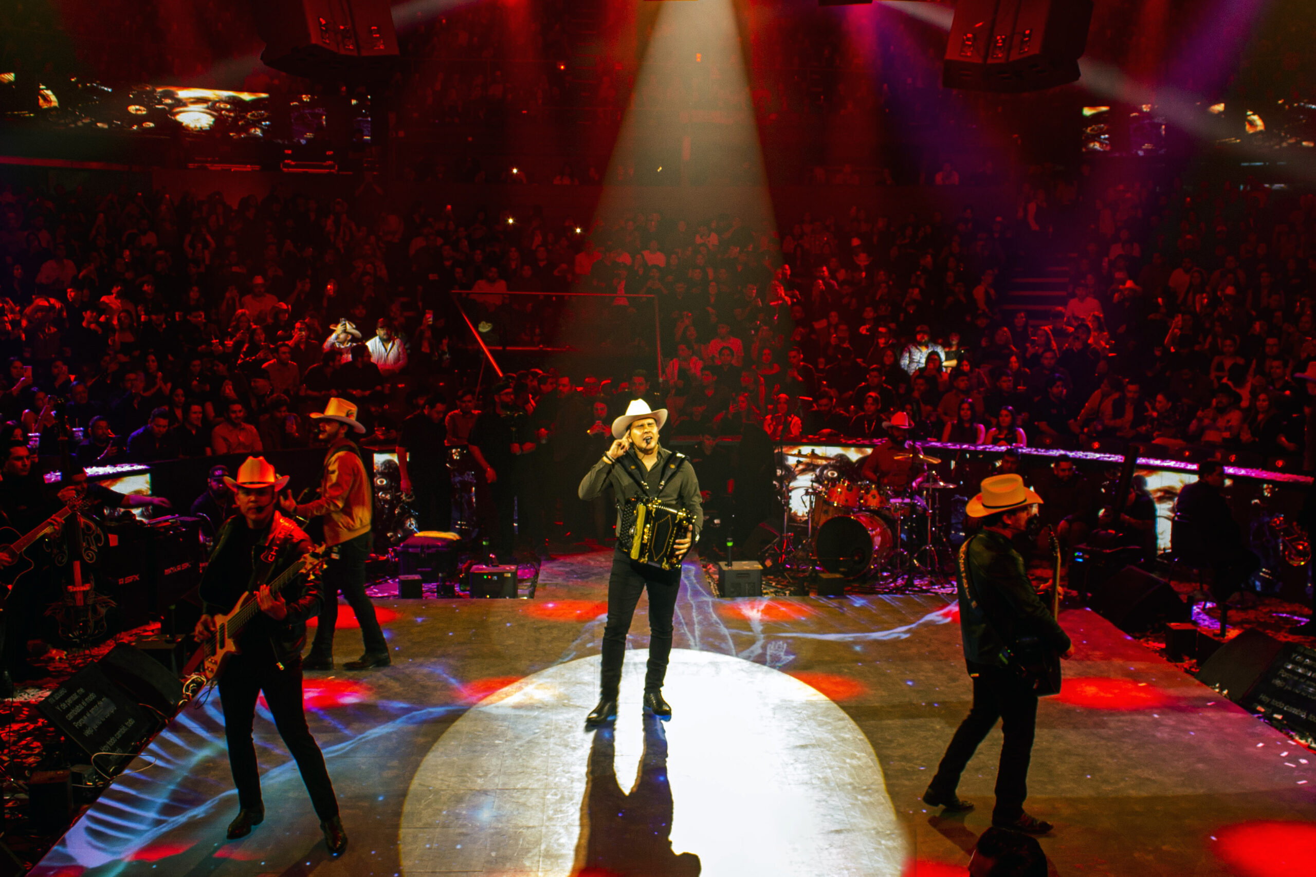 Desde el inicio, el ambiente estuvo marcado por una respuesta constante de los asistentes, quienes permanecieron de pie y acompañaron cada interpretación. El redondel vibró durante toda la presentación, reflejando la expectativa generada por el grupo y el momento que atraviesa dentro de la escena del regional mexicano.