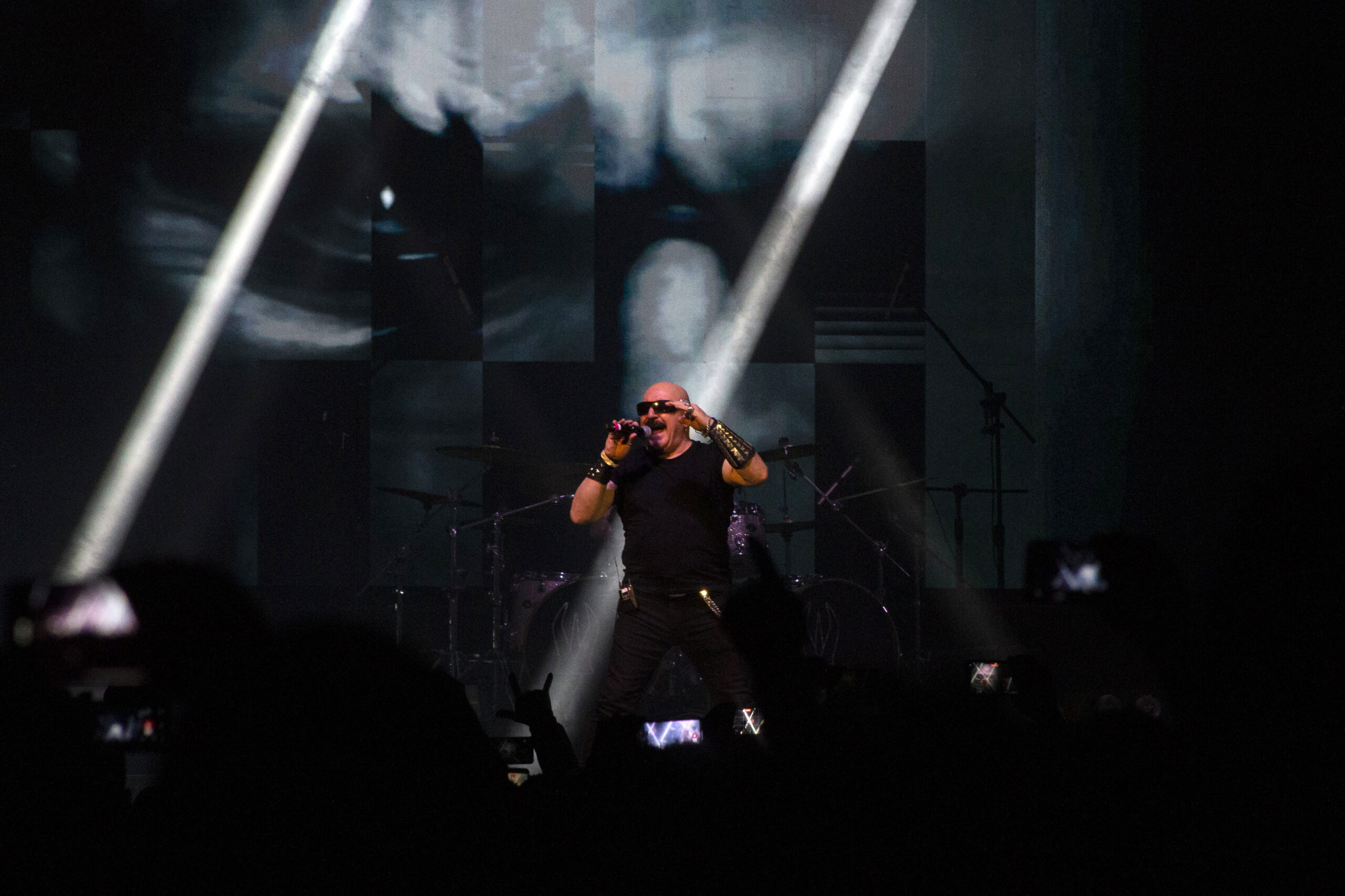 Cerca de las 22:30 horas, las luces del recinto se apagaron para recibir a Ángeles del Infierno. Juan Gallardo, en la voz, y Robert Álvarez, en la guitarra, lideraron una presentación sólida, respaldada por una producción visual que incluyó pantallas de alta definición con imágenes alusivas a la trayectoria del grupo.