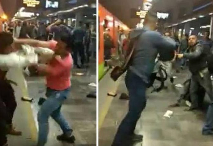 Los hechos se registraron alrededor de las 19:00 horas del jueves en la estación del Metro Tláhuac, cuando 25 hombre comenzaron a enfrentarse a puñetazos y patadas, hasta el momento en que la oficial llegó al lugar para poner orden a la situación.