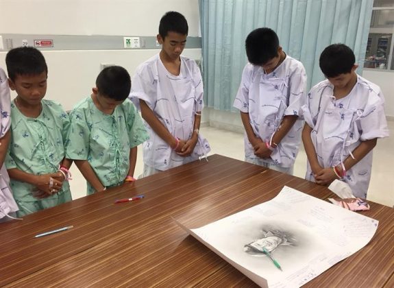 “Los muchachos quedaron sorprendidos y tristes cuando se les contó la muerte de un ex comandante de la Marina durante la reciente operación para rescatarlos de la cueva Tham Luana en la provincia de Chiang Rai”,  indico el ministerio de Salud de Tailandia a través de un comunicado.