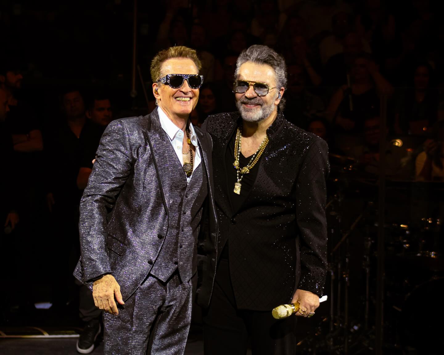 La dinámica del concierto permitió que cada uno tuviera su momento protagónico. Mijares conquistó en solitario con “Tan Solo” y “Siempre”, interpretaciones que generaron una conexión profunda con la audiencia. Más tarde, Emmanuel tomó la estafeta con clásicos como “Rey Azul”, “Es mi mujer” y “Este terco corazón”, manteniendo la energía al máximo.