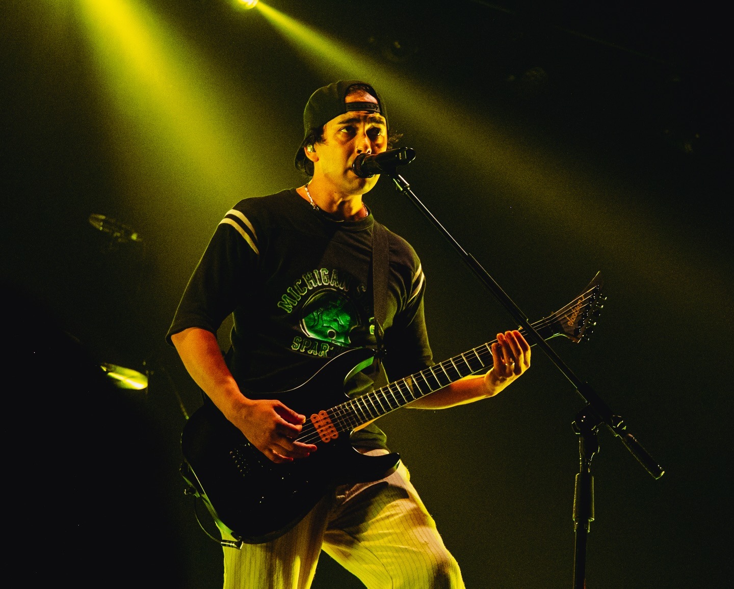 La intensidad emocional se profundizó con la interpretación de cortes más recientes, como “Emergency Contact” y “Circles”, temas que reflejan la evolución de la banda hacia territorios sonoros más maduros y melancólicos, sin perder la potencia característica.