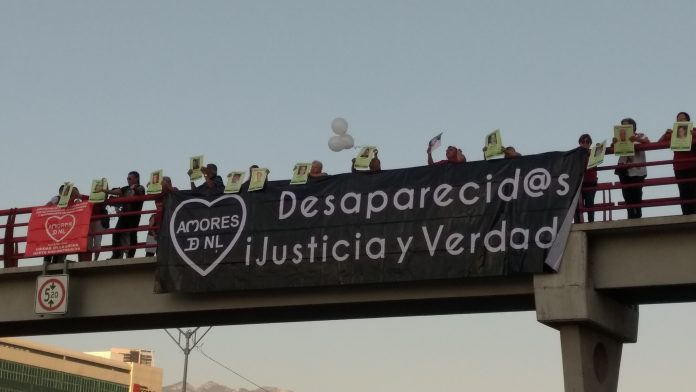 En el marco del Día Internacional de Víctimas de Desaparición Forzada, se realizó una marcha en el puente que se ubica cerca de Serafín Peña, en Monterrey.