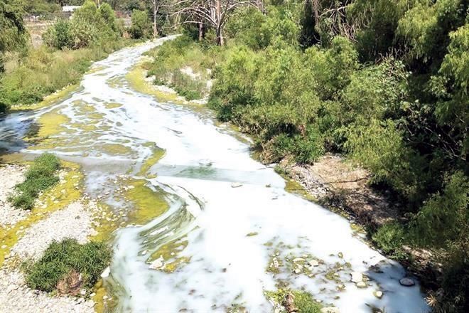 El cauce se tiño de blanco por aproximadamente dos kilómetros, que hasta la altura del Estadio BBVA Bancomer el agua se alcanzó a ver de color gris opaco.