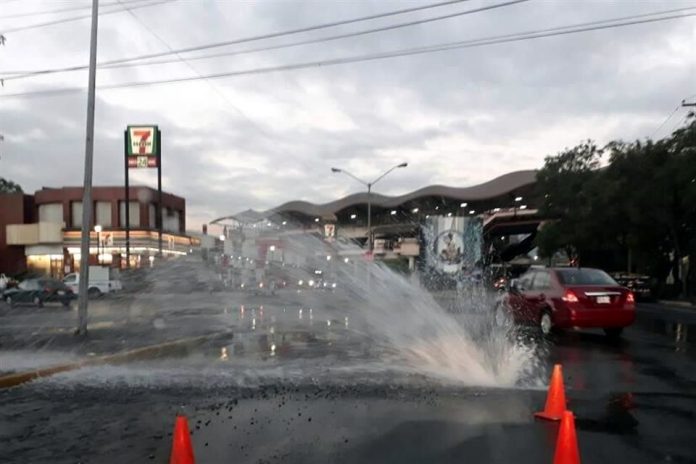 Cerca de las 06:00 horas comenzó a brotar el agua desde el pavimento, sobre los carriles de oriente a poniente de la arteria, cerca del cruce con la Avenida Guerrero.
