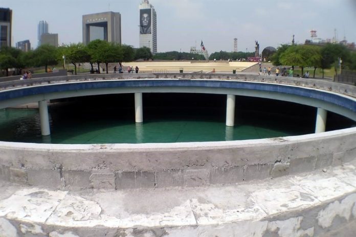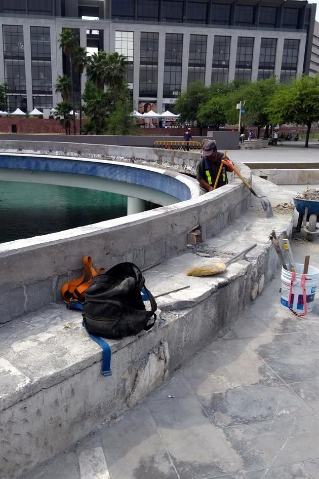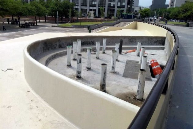 Las labores de remodelación en el Paseo Santa Lucía siguen a la orden del día, debido a que se buscan rehabilitar las principales fuentes de agua que se ubican en la explanada del Museo de Historia Mexicana.