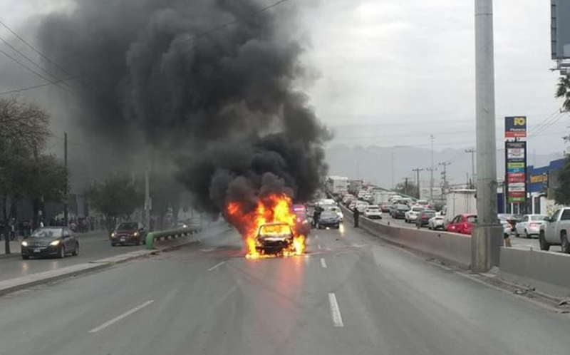 La mañana de este miércoles se registraron dos accidentes viales sobre la carretera a Laredo; uno de ellos dejó a más de 25 trabajadores lesionados, mientras que el otro un automóvil consumido completamente por las llamas.