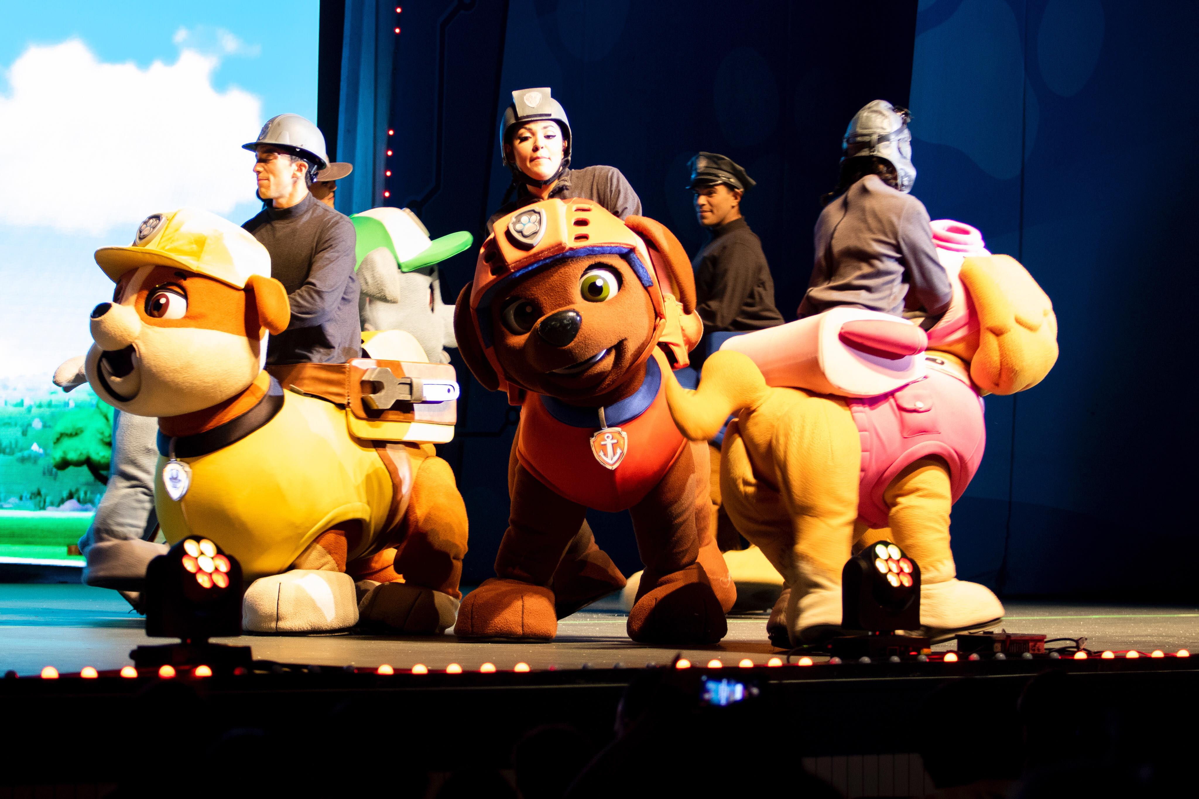 Ryder y su equipo canino integrado por Marshall, Rubble, Chase, Rocky, Zuma, y Skye, subieron al escenario junto a la alcaldesa Goodway para bailar, cantar y cumplir con la carrera de Bahía aventura.